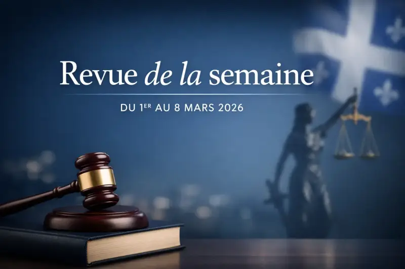 La nouvelle judiciaire dominante de cette semaine vient directement de la Cour d'appel du Québec : la juge en chef Manon Savard a choisi de cesser ses fonctions de juge en chef du Québec à compter du 30 juin 2026, mais continuera de siéger à la Cour d'appel à titre de juge surnuméraire.