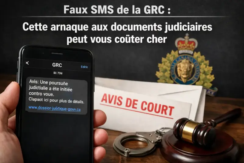 Vous recevez un message texte de la GRC vous informant qu'elle n'a pas pu vous remettre des documents judiciaires. Un lien, un délai de 24 heures, la menace de manquer votre audience. Tout est faux. La GRC ne vous enverra jamais de SMS. Voici comment reconnaître cette fraude et vous protéger.
