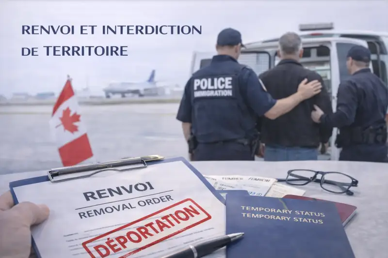 Vous faites l'objet d'une mesure de renvoi ou vous êtes déclaré interdit de territoire au Canada. Ce guide explique les motifs d'interdiction, le processus d'enquête de l'ASFC, les audiences devant la CISR, les sursis et les recours pour contester votre renvoi.